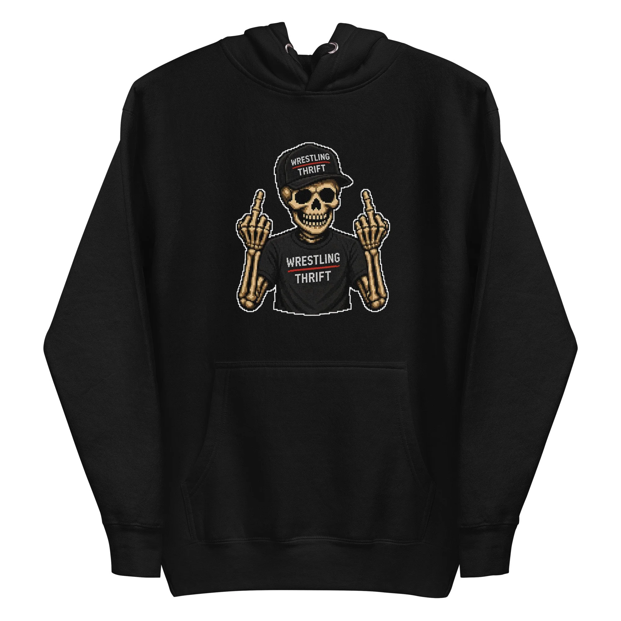 The Wrestling Thrift “8-Bit Renegade” Hoodie is built for collectors who like to stand out. Retro pixel style meets straight-up attitude — this one brings that rebellious energy every time you throw it on.